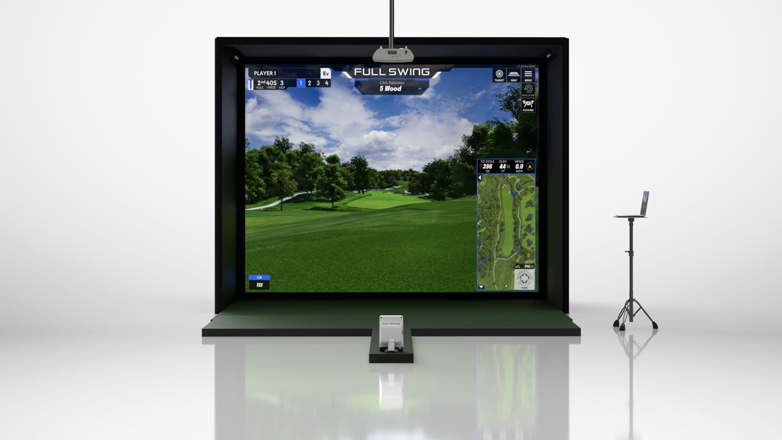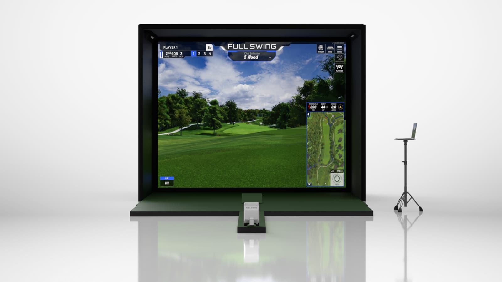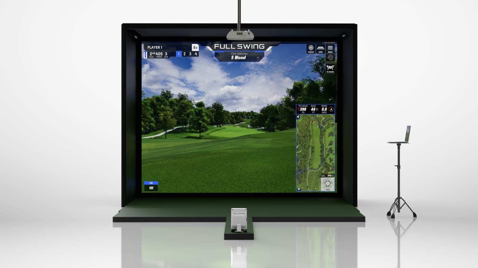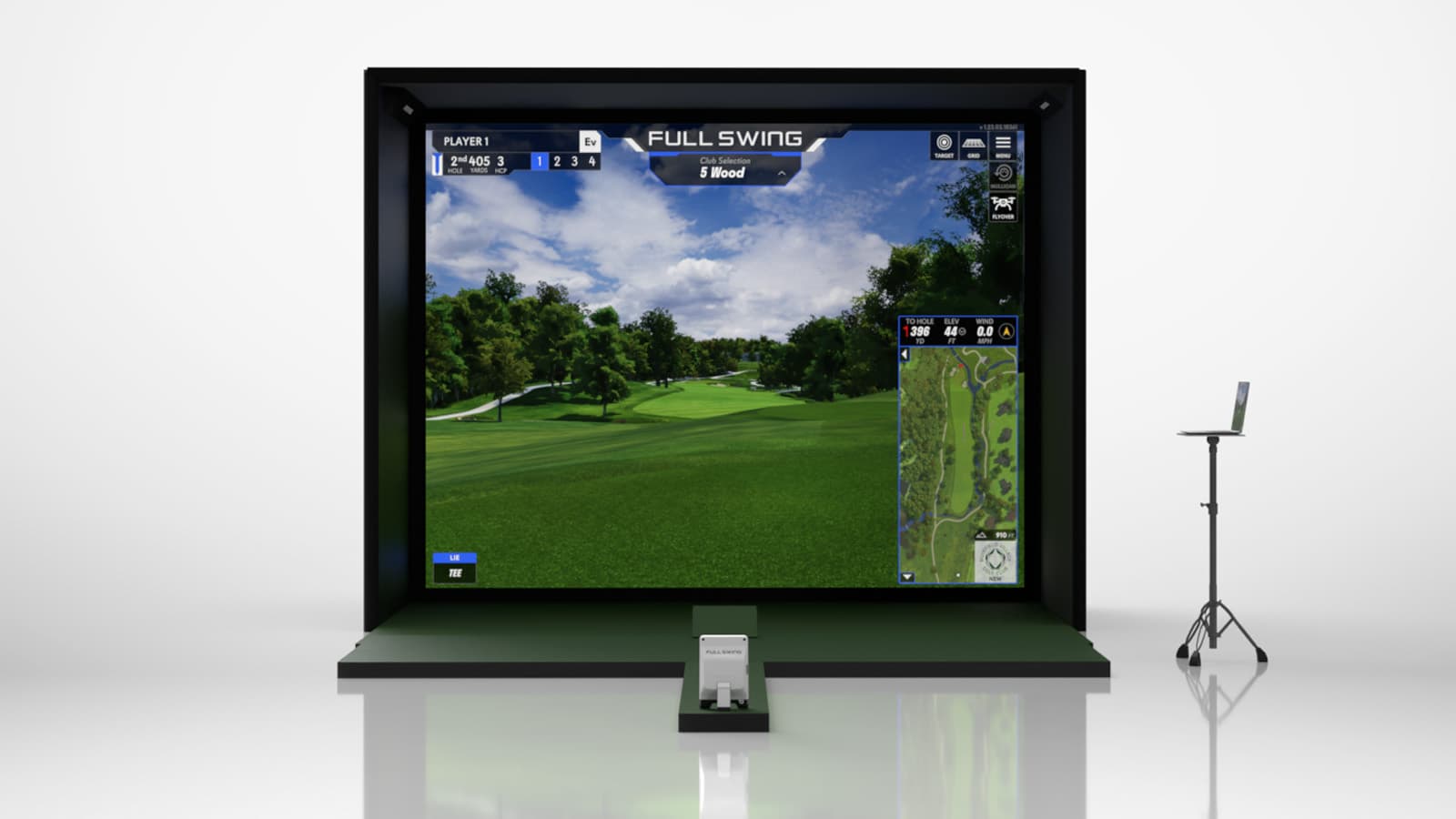 Included: 12' screen enclosure, turf landing pad and mats, Full Swing KIT, premium touchscreen gaming laptop