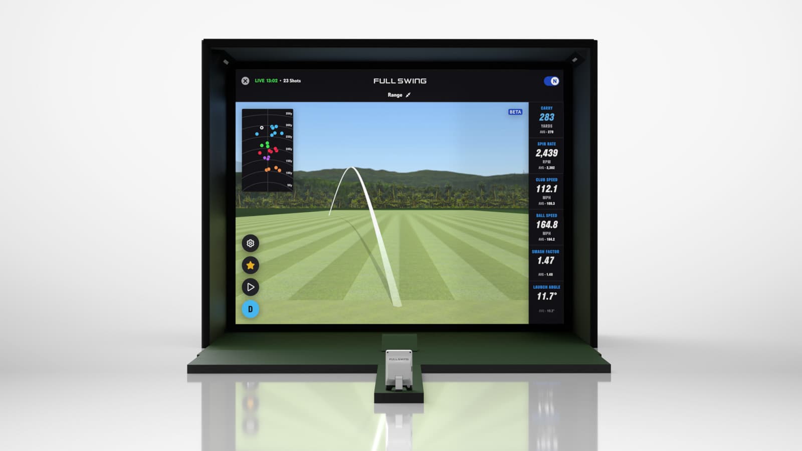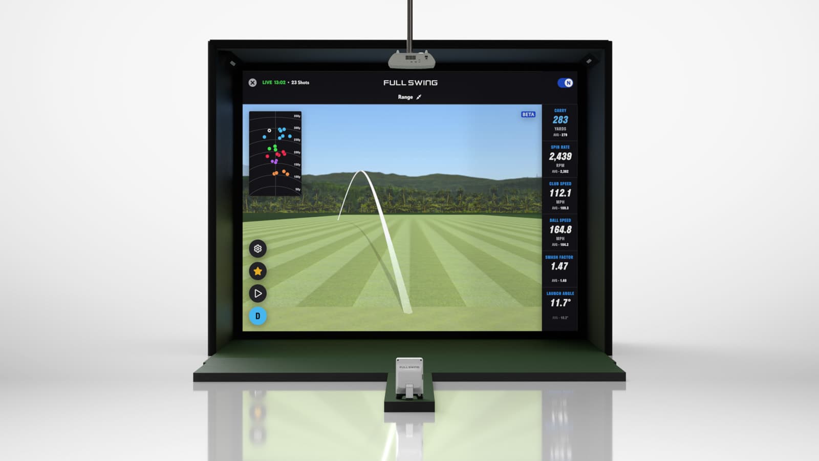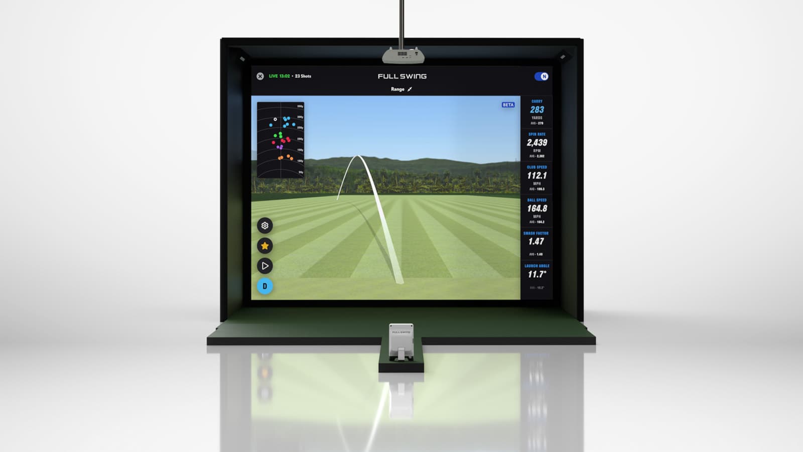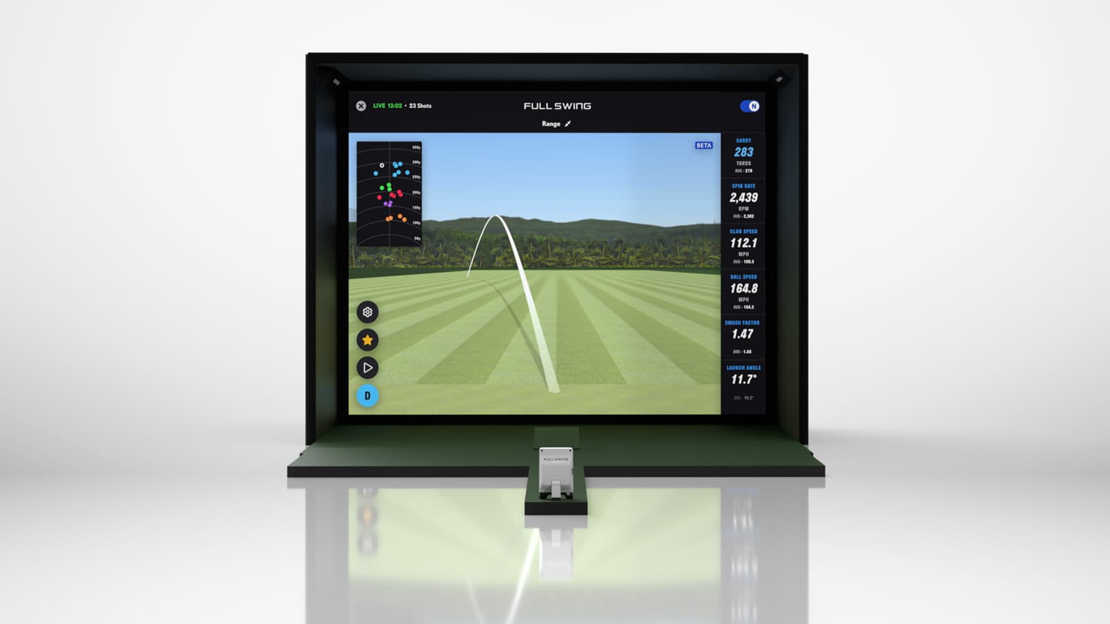 Included: 12' screen enclosure, turf landing pad and mats, Full Swing KIT, premium touchscreen gaming laptop
