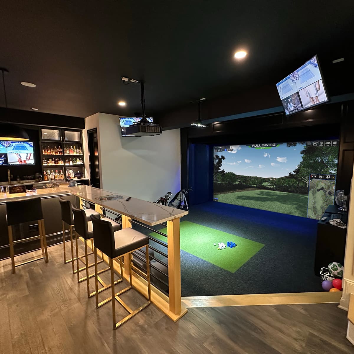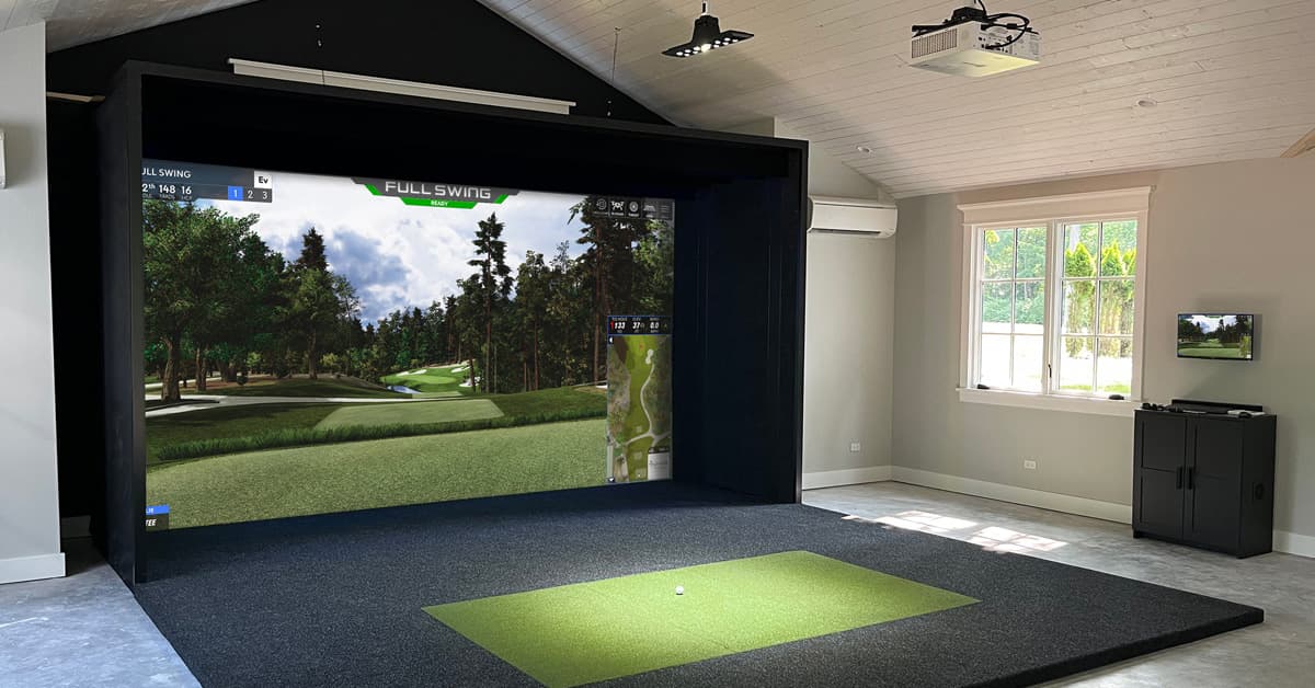 Our widescreen solution is our largest simulator option. The premium size brings the most immersive feeling of the golf course inside your house. Recommended Space 10’H x 16’6”W x 22’D (Multiple Sizes Available, Please Talk To A Representative)